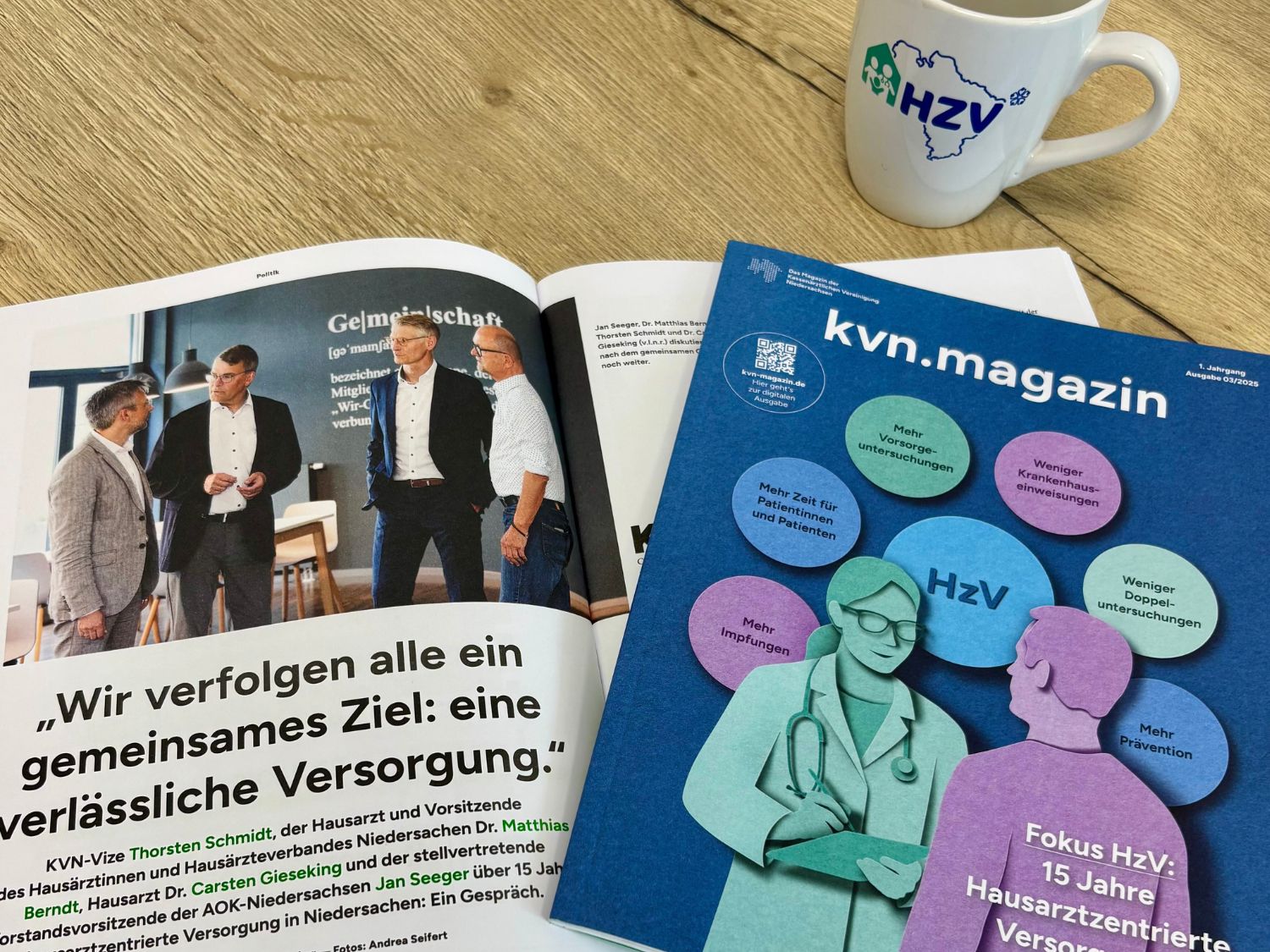 Zum 15. HZV-Jubiläum widmet sich das aktuelle kvn.magazin ausführlich unseren „Hausarztprogrammen“ in Niedersachsen. Mit dabei sind unter anderem Stimmen aus Praxis und Politik, aktuelle Evaluationsdaten und ein Blick in die Zukunft. Außerdem ist Landesvorsitzender Dr. Matthias Berndt im KVN-Podcast „ambulant – relevant“ zu Gast und spricht über Vorteile, Erfahrungen und Perspektiven der HZV.